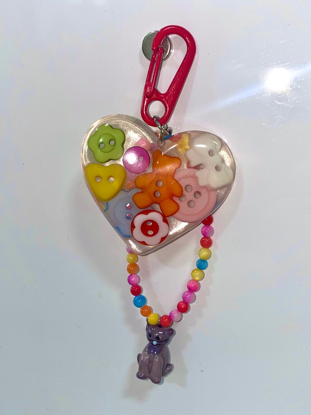 알록달록 귀여운 색감과 도자기 소재의 고양이 팬던트가 특징입니다.