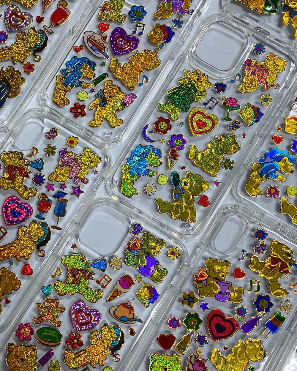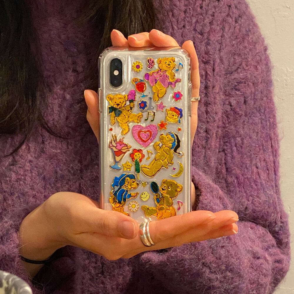 주인장이 아끼는 빈티지스티커들을 조합해 봅스튜디오만의 분위기로 제작한 키치한 감성의 레트로 베어 폰케이스입니다. 선명한 색감이 돋보이는 디자인으로, 어떤 기종의 색상에도 잘 어울립니다. 주문마다 구성을 조금씩 다르게 작업하기 때문에 비슷해보이지만 같은 구성은 없는 점이 가장 큰 장점입니다! 굿 초이스 되세요!